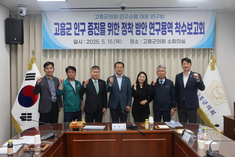 [고흥군 세계타임즈=우덕현 기자] 고흥군의회(의장 류제동) 의원연구단체인 ‘고흥군의회 인구소멸 대응 연구회(대표 박경석 의원)’는 지난 15일, 군의회 소회의실에서 ‘고흥군 인구 증진을 위한 정착 방안 연구용역’ 착수보고회를 개최하며 본격적인 활동에 돌입했다.