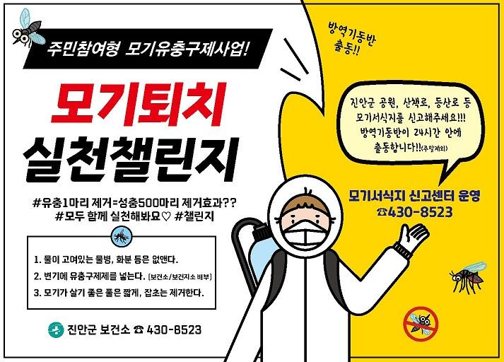 또한 평상시 실천할 수 있는 모기 유충 구제법을 교육해 주민참여형 구제 활동이 이루어질 수 있도록 할 예정이다.