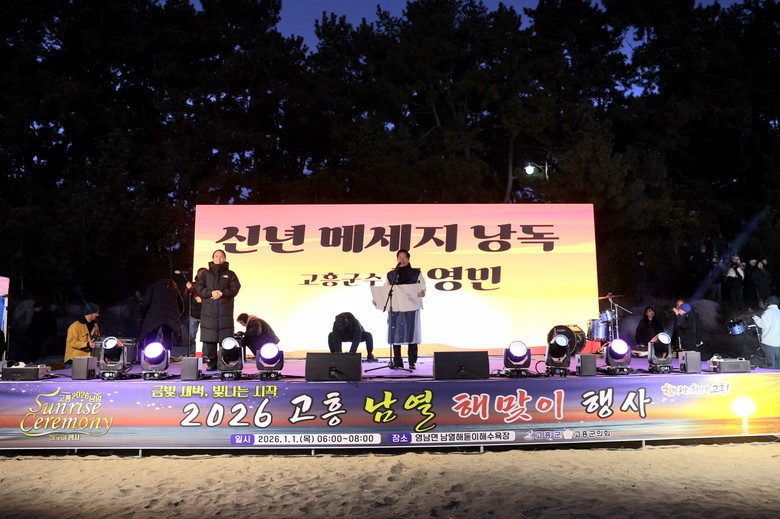 [고흥군 세계타임즈=우덕현 기자] 고흥군(군수 공영민)은 지난 1일 새벽 남열해돋이해수욕장에서 열린‘2026 고흥 남열 해맞이 행사’가 군민과 관광객 등 8천여 명이 함께한 가운데 성황리에 마무리됐다고 밝혔다.