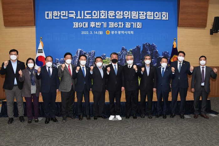 이번 정기회는 광주광역시의회(정무창 운영위원장) 주관으로 개최됐으며, 전국 13개 시·도의회 운영위원장이 참석해 ‘문화도시 정책 광역자치단체 중심 이양 촉구안’, ‘석유화학단지 주변지역 지원법 제정 촉구 건의안’등의 안건을 심사했다.