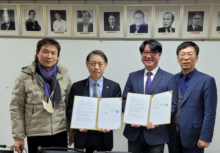 | ▲(사)한국미술협회에서 열린 WAE 공식플랫폼 NFT 마켓플레이스 ‘CAVE(카브)’ 개발 협약식. (왼쪽부터 IAA 한국위원회 정준 총괄이사, 미술협회 이광수 이사장, 메타이터널(주) 김태원 대표, 가이덤 재단 조영구 최고운영책임자) <사진 제공 = 가이덤 재단> |