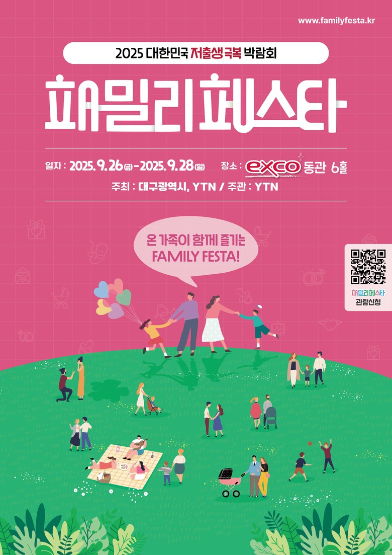 ‘패밀리페스타’는 9월 26일부터 28일까지 동관 6홀에서 진행되며, 75개 기관과 기업이 참여해 125개 부스를 운영한다. 임신·출산·육아 정보 제공은 물론, 난임·임산부 심리상담, 응급상황 대응 실전 교육 등 다양한 전시·체험 프로그램이 마련된다.