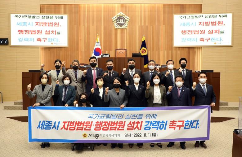 특히 세종시의회는 김현미 의원의 대표 발의로 ‘세종시 지방법원‧행정법원 설치 촉구 결의안’을 채택하고 세종시 지방법원과 행정법원 설치를 통해 세종시민의 재판 받을 권리를 보장하고 국가균형발전을 실현해야 한다고 촉구했다.