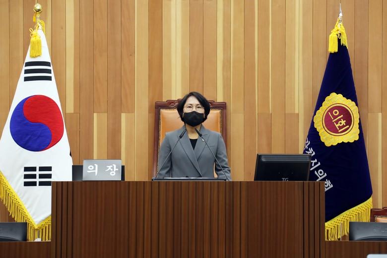 이날 본회의는 2027 충청권 하계 세계대학경기대회 유치를 위해 벨기에 브뤼셀로 공무 국외 출장길에 오른 상병헌 의장을 대신해 박란희 제1부의장이 주재했다.