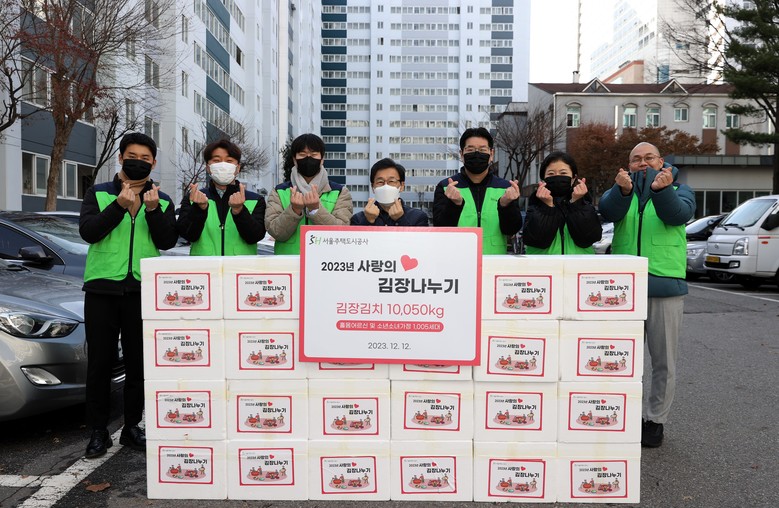 SH공사는 12일 서울 강남구 수서6단지에서 ‘2023년 사랑의 김장나누기 전달식’을 개최하고, 공공주택 거주 취약계층 1,005세대에 겨울맞이 김장김치 1만50kg(약 10t)을 전달했다고 밝혔다.