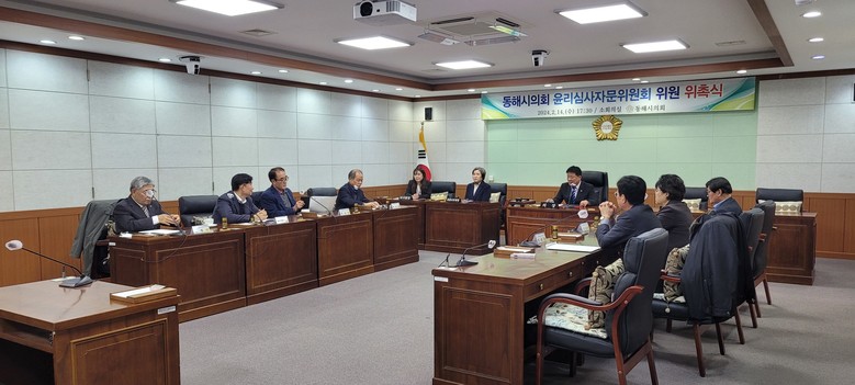 [동해시 세계타임즈=김민석 기자] 동해시의회(의장 이동호)는 2월 14일(수) 시의회 소회의실에서 윤리심사자문위원회를 개최하고 5명의 위원을 위촉했다.