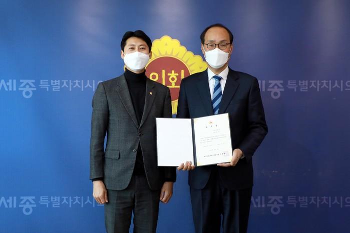 [세종=세계타임즈 이채봉 기자] 세종특별자치시의회(의장 이태환)는 12일 입법 활동 지원을 강화하기 위해 조용호 입법고문을 신규 위촉했다고 밝혔다.