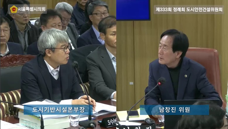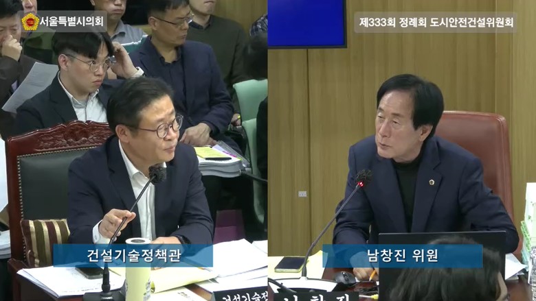 - 건설공사 동영상 촬영, 대가 지급에 대한 기준 정립돼야 [서울 세계타임즈=이장성 기자] 서울특별시의회 도시안전건설위원회에서 의정 활동 중인 남창진 의원(국민의힘, 송파2)은 12일 소관기관인 서울시 도시기반시설본부 시설국과 건설기술정책관 2025년 행정사무감사에서 탄천변 동측도로 구조개선 현장의 우회도로의 안전관리와 교통처리 등을 주문했다.