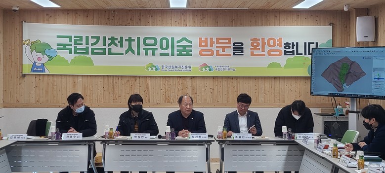 이번에 두 번째로 개최되는 간담회의 주요목적은 보행약자들이 ‘국립김천치유의숲’에서 일반인들과 똑같이 불편함 없이 보편적 산림복지서비스 제공을 받을 수 있도록 장애물 없는 환경 정비에 대한 방안에 대해 연구하고 토론하는 것이었다.