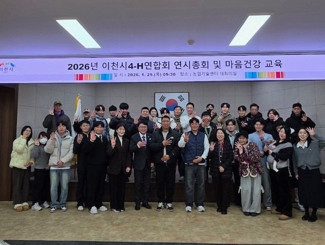 [이천시 세계타임즈=송민수 기자] 이천시4-H연합회(회장 박노영)는 29일 농업기술센터 대회의실에서 회원 50여 명이 참석한 가운데 2026년 연시총회를 개최했다.