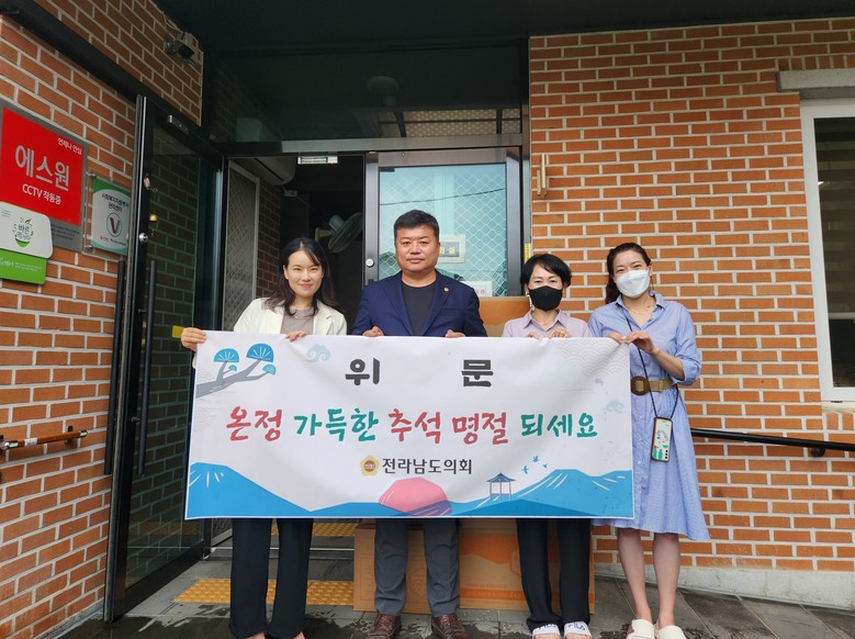 [전남 세계타임즈=우덕현 기자] 전남도의회 농수산위원회 정영균 의원(더불어민주당, 순천1)은 지난 9월 14일 민족 최대 명절인 추석을 맞아 순천시 서면 ‘햇빛실버빌’을 방문해 위문품과 함께 따뜻한 온정을 나누었다.