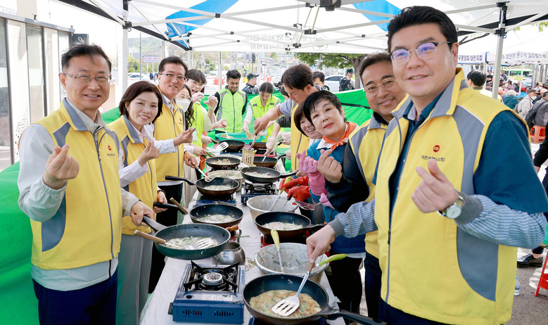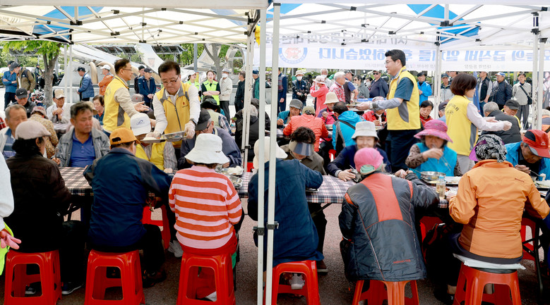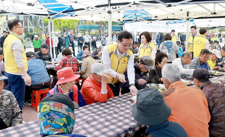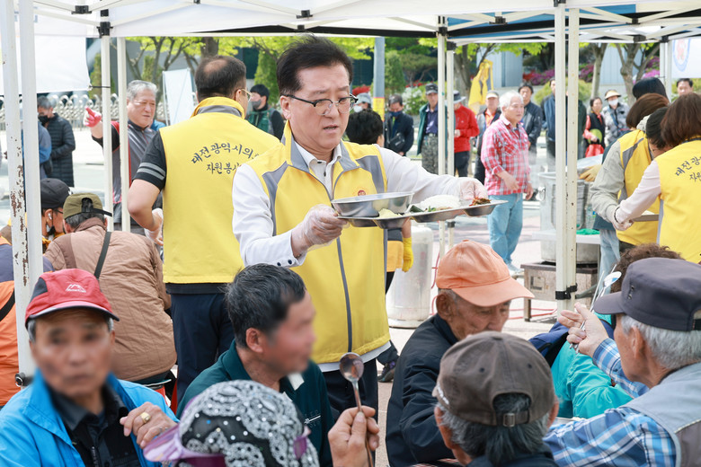 대전시의회는 대전곰두리자원봉사연합과 함께 27일 오전 대전역 동광장에서 노숙인 등 취약계층을 위한 식사배식 봉사활등을 했다. 시의원들과 자원봉사자들이 협동해 식자재 준비부터 배식까지 급식을 마련했다. 소외계층에 국밥과 반찬 등을 제공하며 안부를 묻고, 어려움을 경청하면서 정과 온기를 나눴다.