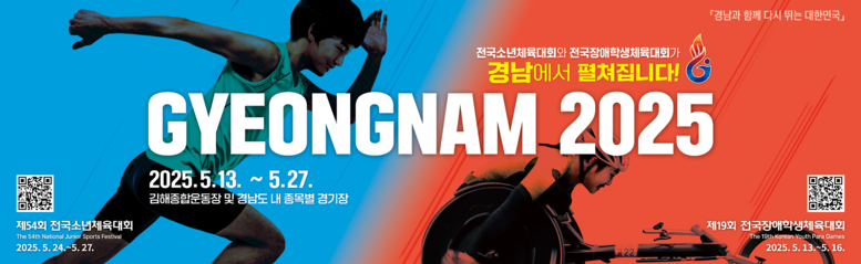 - 경남도, 어울림과 성장의 체전 위해 안전, 문화 등 만반의 준비 완료 [세계타임즈=경남 최성룡 기자] 경상남도(도지사 박완수)는 5월 13일부터 16일까지 제19회 전국장애학생체전이, 5월 24일부터 27일(육상 사전경기 5월 17일~18일)까지 제54회 전국소년체전이 경상남도 15개 시군에서 개최된다고 밝혔다.