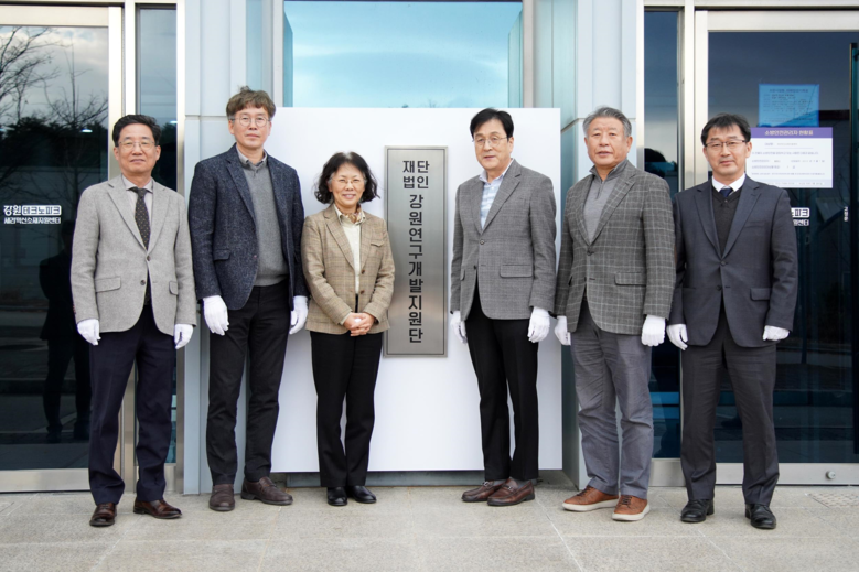 이날 현판 제막식에는 김광래 강원특별자치도 경제부지사(이사장)를 비롯해 이은영 과학기술정보통신부 연구성과혁신정책관, 이형찬 강원특별자치도 전략산업과장, 김남수 강릉과학산업진흥원장, 황욱중 강원테크노파크 글로벌사업단장 등 관계기관 주요 인사들이 참석했다.