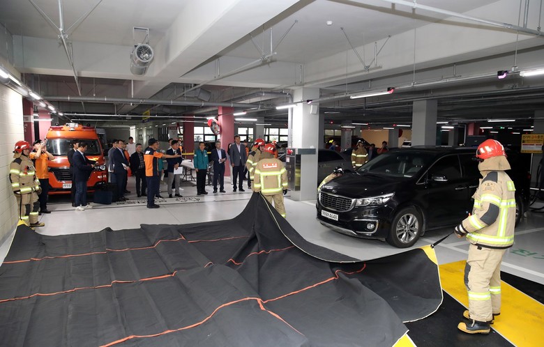 먼저 건소위는 내포신도시에 위치한 아파트 지하주차장 전기자동차 화재 대응훈련 및 화재진압 시연회에 참석했다. 이날 소방본부는 현장에서 전기자동차 화재진압 시연(질식소화포‧상방방사관창‧워터포켓)을 통해 화재진압 기술을 선보였다. 시연회는 최근 친환경 전기자동차 증가 추세에 따라 공동주택 지하주차장 등 전기자동차 화재 발생 시 효율적인 대응을 위해 마련됐다.