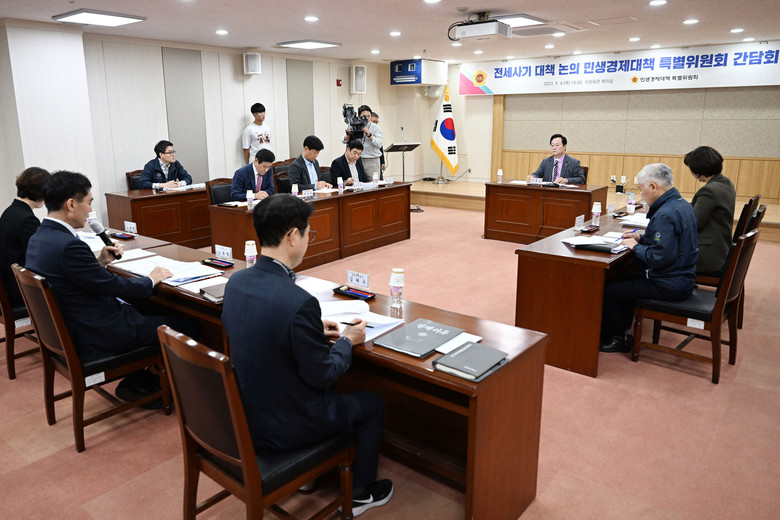 5월 4일(목) 시의회 의원회관 회의실에서 열린 간담회에는 윤태한 민생경제대책 특별위원회 위원장을 비롯하여, 강달수 부위원장, 김재운‧문영미‧박종율‧이승우 특별위원회 위원 및 해당 업무를 소관하는 건축주택국장을 비롯한 관계 공무원이 참석하였다.
