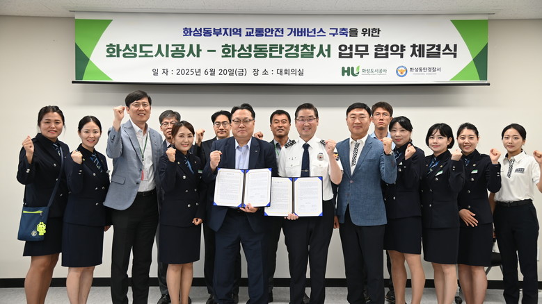 이날 협약식에는 HU공사, 화성동탄경찰서 및 화성동탄녹색어머니연합회가 참석해 관내 교통안전기관 간 실질적 협력과 교통안전 활동 추진을 위한 민·관·경 교통안전 거버넌스 구축의 의미를 더했다.