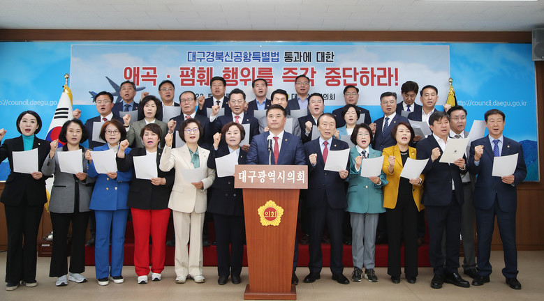 대구광역시의회는 대구경북신공항이 성공하는 날까지 함께 힘을 모으고 앞장서 최선을 다할 것을 대구・경북민 앞에 약속하는 것을 끝으로 이날 성명을 마무리했다.