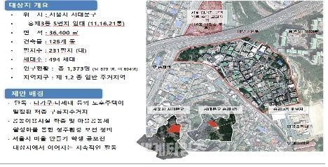 [세계타임즈 심귀영 기자]서울시 주거환경관리자문단 주민역량검증 결과 우수마을로 평가받은 서대문구 홍제3동 5번지 일대를 주거환경관리사업 대상지로 결정했다고 서울시가 13일 밝혔다.