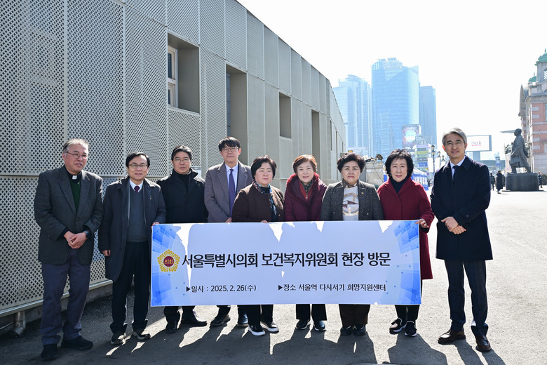 [서울 세계타임즈=이장성 기자] 서울특별시의회 보건복지위원회 김영옥 위원장(국민의힘, 광진3)은 보건복지위원회 위원들과 함께 2월 26일(수) 제328회 임시회 기간 중 서울역 일대의 노숙인 무료급식 지원기관인 ‘따스한 채움터’(서울시 용산구 한강대로 377)와 ‘서울역 다시서기희망지원센터’(중구 청파로 426), 그리고 다시서기희망지원센터 이전 예정지인 서울시 지하보도를 방문하였다. 이어 오후에는 ‘서울특별시 동부병원’(서울시 동대문구 무학로 124)을 찾아 병원 운영현황을 점검하고 개선방안을 논의하였다. 이번 현장 방문은 기관 종사자들을 격려하고, 현장 중심의 의정활동을 통해 시민들에게 실질적으로 체감할 수 있는 정책적 대안을 모색하기 위해 진행되었다.