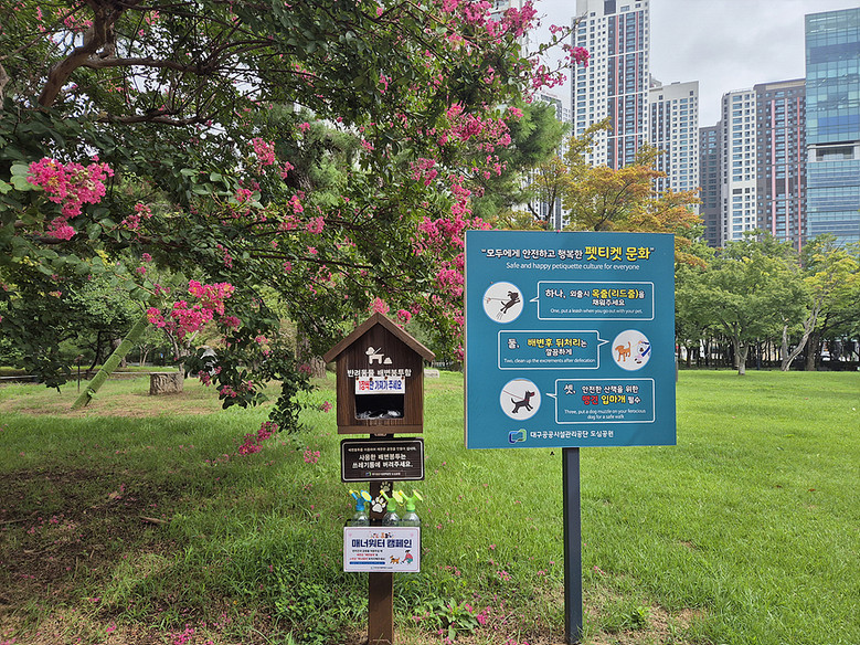 공단은 캠페인과 함께 국채보상운동기념공원을 포함한 도심공원 6곳에 ‘매너워터’를 비치했다. 매너워터는 반려견이 소변을 본 자리에 뿌려 악취를 줄이고 흔적을 씻어내는 휴대용 물로, 시민들이 자율적으로 사용할 수 있도록 하고 있다.