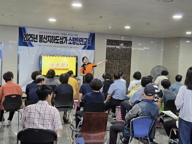 이번 교육은 화재 발생 시 대형 인명 및 재산 피해로 이어질 수 있는 지하상가의 특성을 고려해 마련됐으며, 실제 현장에서 활동 중인 중부소방서 실무자를 강사로 초빙해 실질적인 화재 예방 및 초기 대응 요령에 대한 체계적인 교육이 진행됐다.