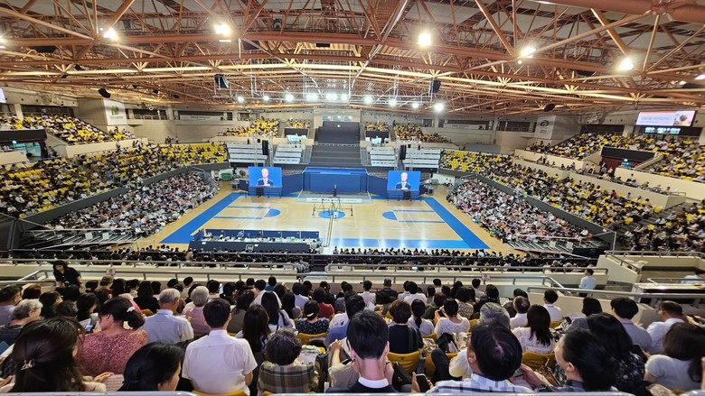 ▲천안 유관순체육관에서 7일부터 오는 9일까지 3일간의 일정으로 열리는 여호와의 증인의 천안가 지역대회