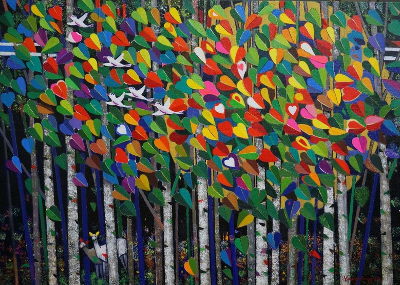 그러니까 형태의 아름다움과 의미로서의 가장 위대한 어머니의 사랑을 비롯하여 가족의 사랑, 나라 사랑, 친구의 사랑, 또는 짐승들의 사랑, 곤충의 사랑, 식물의 사랑 등등. 생명 줄이라고 할 수 있는 ‘사랑’을 표현하고 있다. 물론 많은 사람들이 사랑이란 개념을 정의 내리기는 쉽지 않으면서도 사랑을 운위(云謂)하고 있다. 시인들이 흔히 사랑 이야기를 전개하면 모정이나 연애에 붙여 서정적인 글을 남기지만, 미술가가 그림으로 사랑을 표현한다는 것은 매우 어려운 일이다. 뿐만 아니라, 아름답고 정이 넘치는 것만이 아니라, 때로는 슬프기도 하고, 때로는 아프기도 하고, 숨 가쁘기도 하고, 참담한 상처이기도 하고, 회오(悔悟), 그리고 성정이 겉으로 드러나지 않아 알 수 없기도 한다. 이러한 인간의 초극적인 태마를 자신만의 회화양식으로 완성하고 있다.
