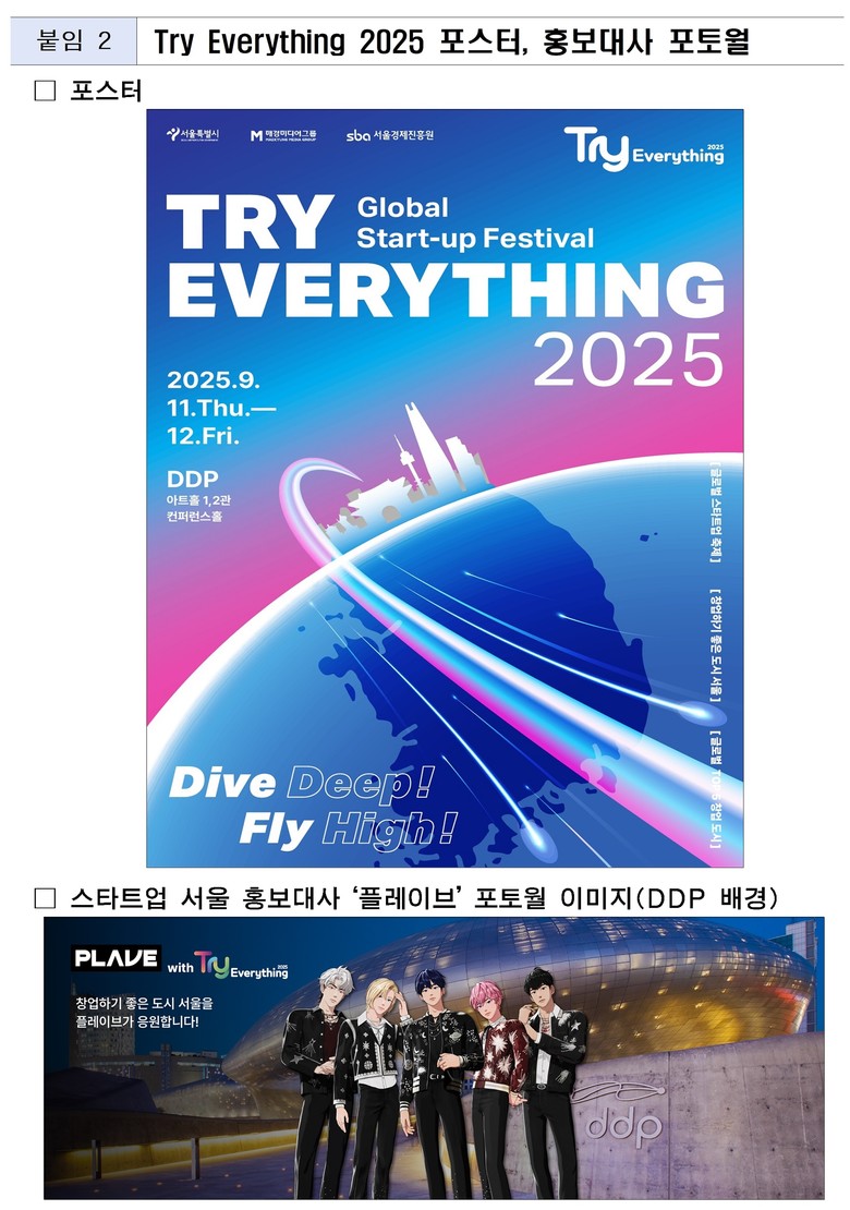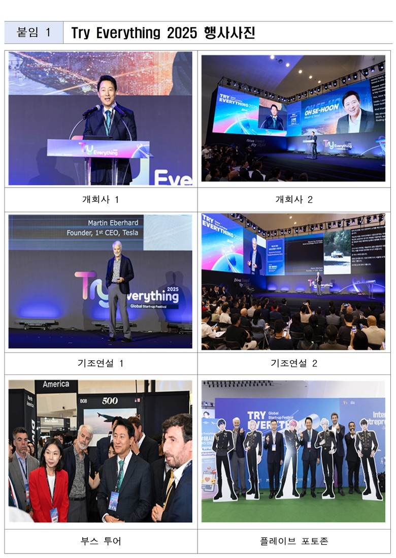 서울시는 지난 9월 11일부터 12일까지 동대문디자인플라자(DDP)에서 열린 ‘트라이 에브리싱 2025(Try Everything 2025)’를 통해 8,578명의 방문객, 총 2,000억 원 규모의 투자유치액 등 역대 최고 실적을 달성했다고 밝혔다.
