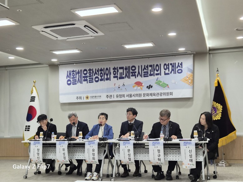 서울시의회 문화체육관광위원회 유정희 의원(더불어민주당, 관악4)은 지난 19일 서울시의회 의원회관 제2대회의실에서 ‘생활체육 활성화와 학교체육시설과의 연계성’을 주제로 정책 토론회를 개최했다. 이번 토론회는 학교 시설 개방을 둘러싼 학교 현장의 부담을 해소하고, 학생 안전과 주민의 건강권을 동시에 확보할 수 있는 제도적 대안을 모색하기 위해 마련됐다.