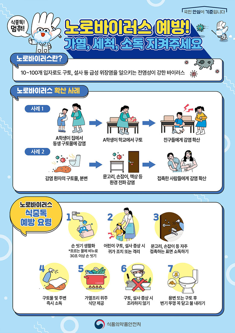 특히 이번 점검에서는 노로바이러스 등 여름철 식중독 예방을 위한 기본위생수칙에 대한 현장 안내도 진행된다. 노로바이러스는 소량의 바이러스만으로도 감염될 수 있고 전염력이 강해 사회복지시설처럼 집단생활이 이뤄지는 시설에서 각별한 주의가 필요하다.