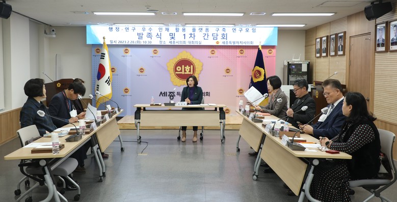 [세종 세계타임즈=이채봉 기자] 세종특별자치시의회(의장 상병헌)는 28일 오전 10시 30분 의회청사 대회의실에서 ‘행정‧연구 우수 인재 활용 플랫폼 구축 연구모임(대표의원 김현옥)’을 발족하고 첫 번째 간담회를 개최했다.