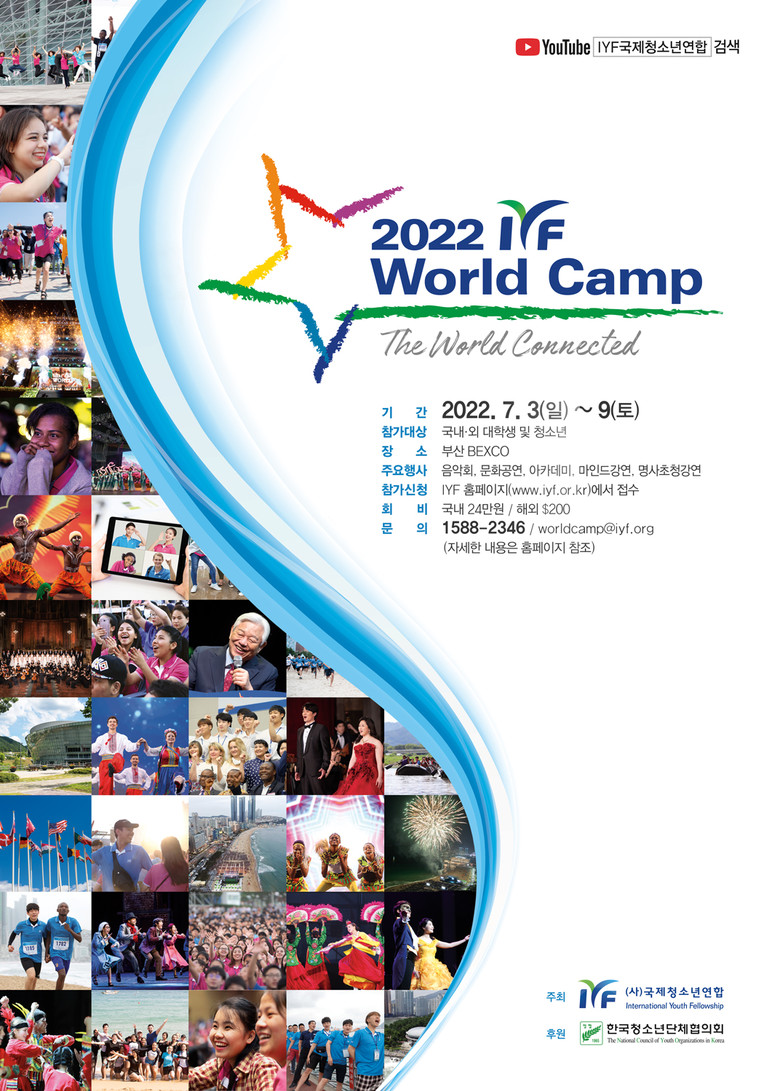 1995년 ‘한미청소년수련회’를 시작으로 매년 개최된 ‘IYF 월드캠프’는 코로나 팬데믹으로 지난 2년간 온라인으로 개최됐으며, 코로나 팬데믹의 완화와 함께 60개국 2700여 명의 대학생과 청소년, 각국 청소년부‧교육부 장관과 대학 총장 등이 참석하는 대면 행사로 개최된다.