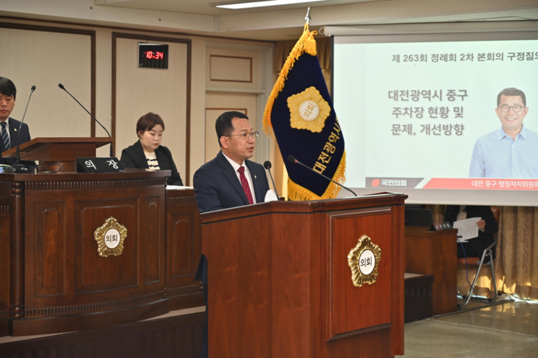 [중구 세계타임즈=이채봉 기자] 대전중구의회(의장 오은규)는 29일 제263회 제2차 정례회 제2차 본회의를 열고, 주요 현안에 대한 구정질문을 실시했다.