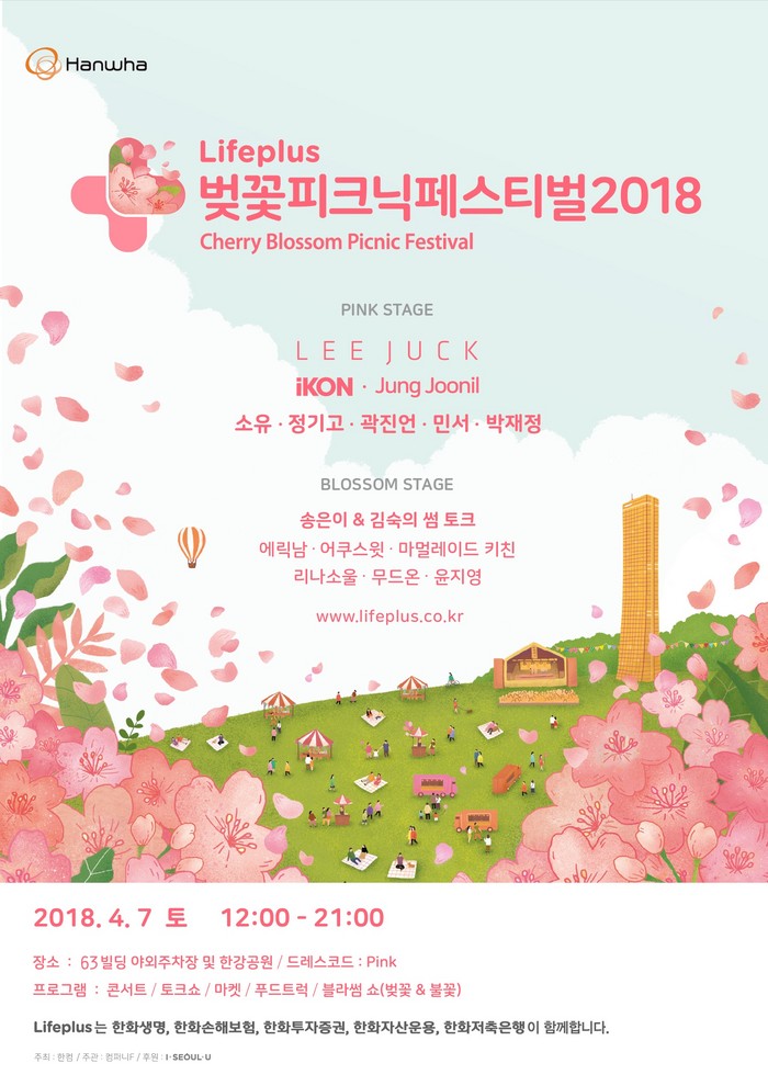 한화그룹 5개 금융계열사(한화생명, 한화손해보험, 한화투자증권, 한화자산운용, 한화저축은행)이 공동 개최하는 봄 시즌 대표적인 축제「Lifeplus 벚꽃피크닉페스티벌 2018」이다.
