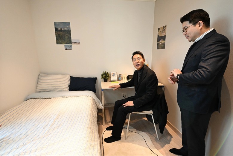 | ▲ 오세훈 서울시장이 8일(목) 오전 신촌에 위치한 민간임대주택 시설을 둘러보고 있다. |