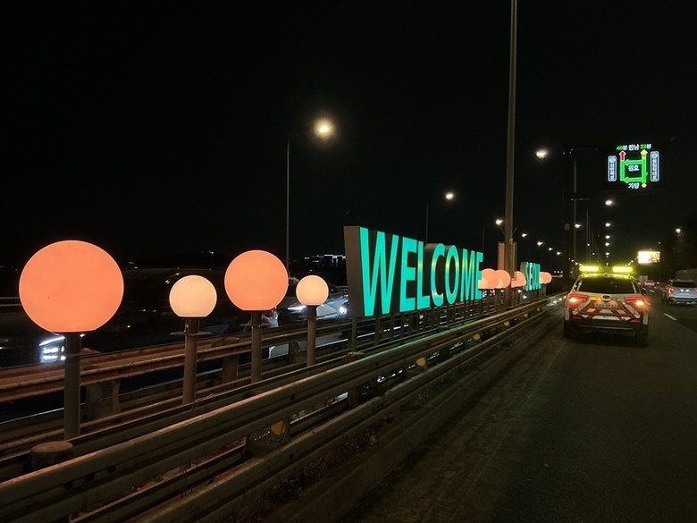 경관조명은 운전자의 시야 확보와 주행 안전을 최우선으로 고려해 설계됐다. ‘환영·정체성·안전’을 핵심 키워드로 삼아 과도한 밝기나 자극적인 표현을 지양하고, 멀리서도 안정적으로 인식되는 빛 환경을 구현해 안전성과 경관성을 함께 확보했다.
