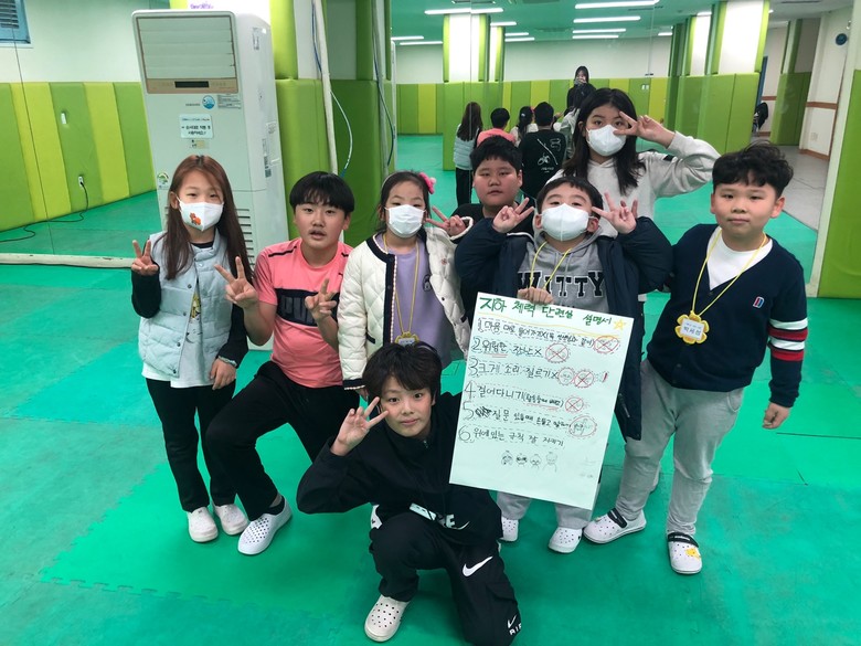 봄, 여름, 가을, 겨울 이렇게 4모둠으로 나눠서, 각각 1코스 체력단련실, 2코스 방송실과 컴퓨터실, 3코스 도서관, 4코스 강당으로 6학년 선배들과 학교 탐방을 다녔다.