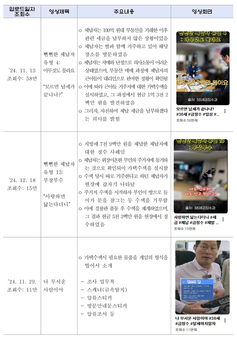 - 고액·상습 체납자 징수 모습이 선량한 납세자들의 공감과 지지를 얻고 있어