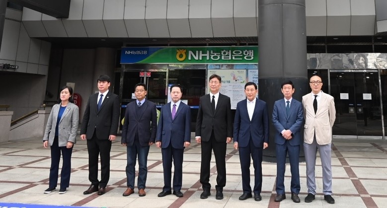 | ▲ 소상공인시장진흥공단 대전본부 항의 방문(2024. 4. 22.) (오른쪽부터)육상래 부의장, 박용갑 중구 국회의원 당선인, 김제선 중구청장, 윤양수 의장, 류수열 의원, 오은규 의원, 김선옥 의원 |