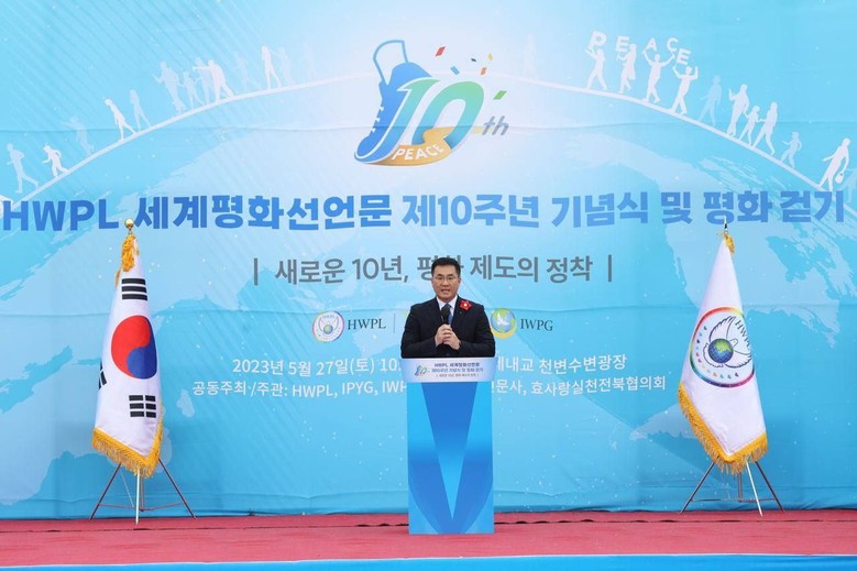 이 대표는 “HWPL이 출범한 목적이 있다. 전쟁 종식과 평화, 나아가 통일을 HWPL이 앞장서서 이뤄 나가야 한다. 나라에 어린아이들이 태어나고 있다. 어떤 나라를 아이들에게 물려줘야 하겠느냐”고 물으며 “문명이 밝아진 이 때에 부딪치고 싸우지 말자. 오늘을 잊지 말자. 우리는 다 평화의 가족이다. 여러분의 뜻을 모아 평화와 통일을 이뤄야 한다. 이 일에 동참해주기를 부탁한다. 보다 나은 세상이 오도록 한 해 동안 함께 노력했으면 좋겠다.”라고 당부했다.