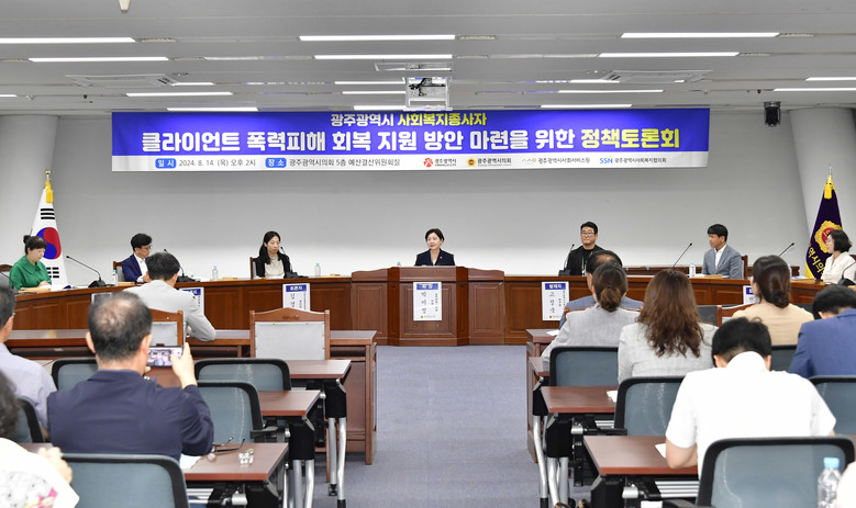 [광주 세계타임즈=손권일 기자] 광주광역시의회 박미정 의원(더불어민주당·동구2)은 14일 시의회 예결위회의실에서 ‘광주 사회복지종사자 폭력피해 지원방안 토론회’를 개최했다.