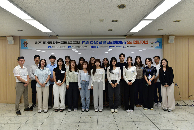 지난 19일 대구도시개발공사에서 열린 오리엔테이션에는 공사·공단 직원 7명과 대구 소재 대학교 재학생 14명이 참여해 향후 2개월간 진행될 활동의 시작을 함께했다. 참석자들은 프로그램의 취지와 운영 계획을 공유하고 활발한 협업을 다짐했다.