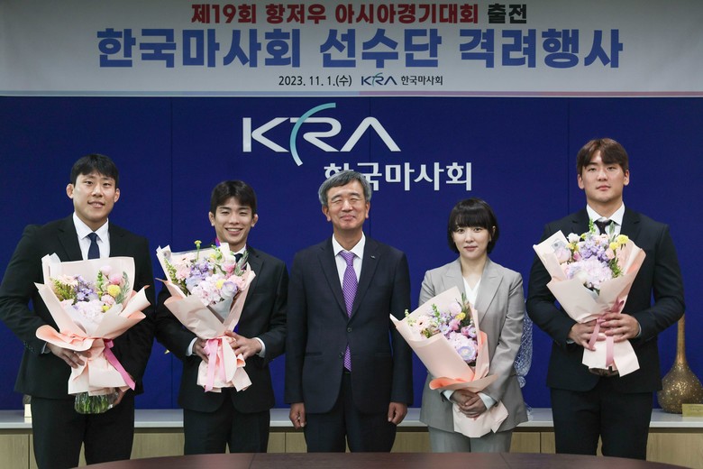 [세계타임즈 = 송민수 기자] 한국마사회는 지난 1일 정기환 마사회장이 과천 소재 본관 회의실에서 제19회 항저우아시안게임에 출전한 유도 및 탁구 국가대표 선수들을 격려하고 포상금을 수여했다고 밝혔다.