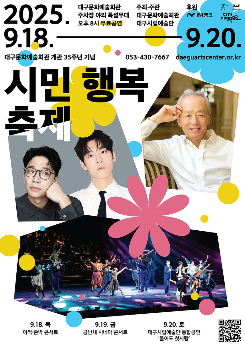 ▸ 제10회 대구사진비엔날레와 연계해 9월 18일~20일까지 3일간 열려 [세계타임즈=대구 한윤석 기자] 대구문화예술회관은 개관 35주년을 맞아 ‘다시 시민 속으로’라는 슬로건을 내걸고 오는 9월 18일부터 20일까지 3일간 야외 특설무대에서 ‘시민행복축제’를 개최한다. 이번 축제는 시민과 소통하며 교류하는 열린 공연 축제로 기획됐다.
