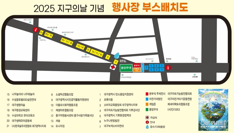 권오상 대구광역시 환경수자원국장은 “이번 2025 지구를 위한 기후행동 행사를 통해 시민들이 지구의 소중함을 다시 한번 되새기고, 대중교통 이용, 1회용품 줄이기 등 생활 속 탄소중립 실천을 다짐하는 뜻깊은 시간이 되길 바란다”고 말했다.
