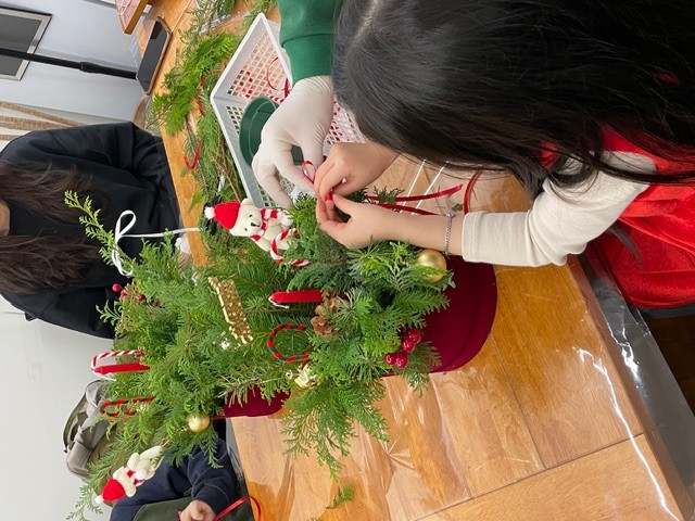 이번 체험은 벨벳 소재 특유의 부드럽고 고급스러운 질감에 생화를 더해 만드는 크리스마스 캔들 박스 제작 활동으로, 유아가 자연의 향과 색을 경험하며 감각·정서 발달을 도모하도록 구성되었다. 양육자는 자녀와 협력하여 작품을 완성하는 과정에서 자연스럽게 소통하며, 가족만의 연말 추억을 만드는 과정 속에서 가족의 문화감수성이 무르익게 될 것이다. 특히, 성탄절을 앞둔 시기적 특성을 반영해, 가족이 특별한 날을 준비하는 과정 자체가 의미 있는 경험이 되도록 기획했다.