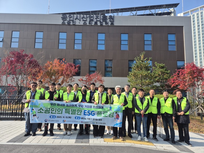 | ▲ 용인시산업진흥원은 13일 기흥구 영덕동 일대에서 소공인 20여명과 함께 ESG 플로깅 활동을 진행했다(사진=용인시산업진흥원 제공) |