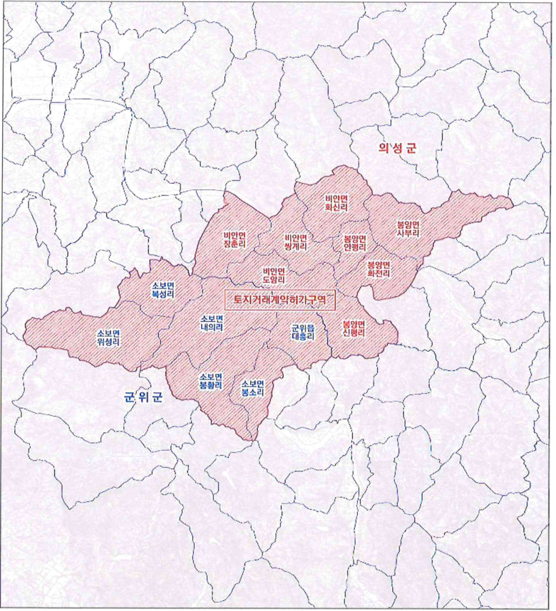 국토교통부는 지난 8월 21일 열린 중앙도시계획위원회 심의 결과를 바탕으로, 기존 대구시 군위군 소보면 내의리 일원과 경북도 의성군 비안면 도암리 일원에, 군공항 이전 사업계획 승인에 따른 신규 지역(군위군 소보면 위성리·복성리, 의성군 비안면 장춘리)을 추가해, 총 83.99㎢를 토지거래허가구역으로 9월 2일(화) 조정·공고했다.