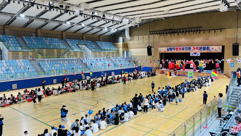 가족사랑주간 첫 번째 행사는 5월 1일, 남양주체육문화센터 실내 종합운동장에서 개최된 가족운동회로, 온 가족이 신나게 뛰어놀 수 있는 행복 충전의 시간을 마련하였다. 이날 행사는 600명에 가까운 인원이 참여할 만큼 열띤 참여율을 보였으며, 기수단 입장, 선서문 낭독, 터널 달리기, 풍선 기둥 게임, 바람 잡는 특공대, 줄다리기, 이어달리기 등 다양한 게임이 열렸다. 남양주별빛유치원 가족, 교직원 모두가 청팀, 홍팀으로 나뉘어 함께 응원하며 박진감 넘치는 시간 속에서 즐겁고 행복한 시간을 보낼 수 있었다.